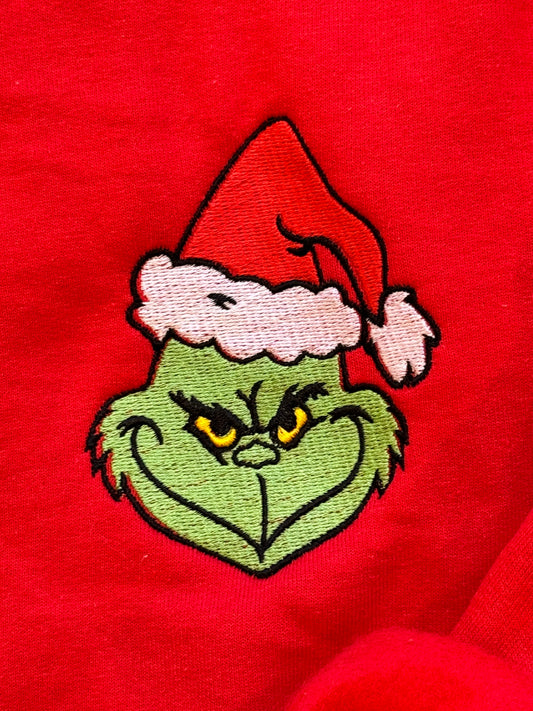 Grinch Head Embroidered Mommy and Me Sweatshirts