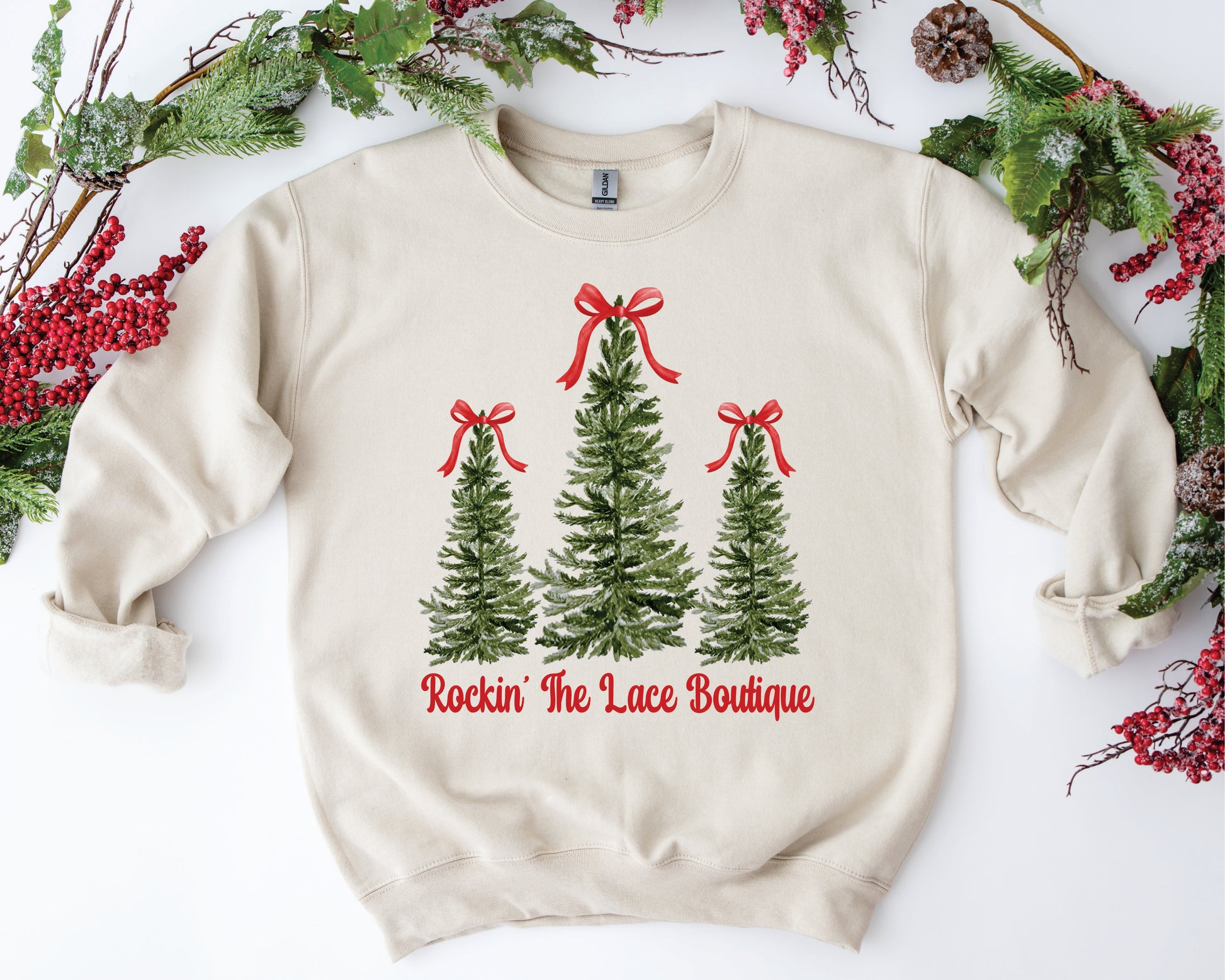 Custom Name Trees with Bow Sweatshirt - Tan